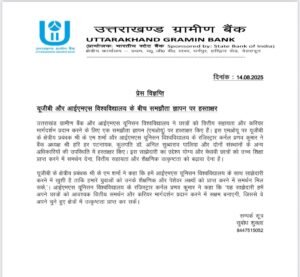 उत्तराखंड ग्रामीण बैंक और आईएमएस विश्वविद्यालय के बीच छात्र—छात्राओं को वित्तीय सहायता और करियर मार्गदर्शन प्रदान करने के लिये एक समझौता ज्ञापन पर हस्ताक्षर किए गए।