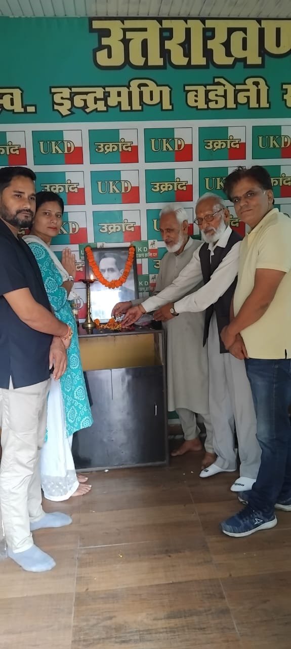 उत्तराखंड क्रांति दल के केंद्रीय कार्यालय में दल के संस्थापक सदस्य एवं प्रथम अध्यक्ष स्वर्गीय श्री डीडी पंत जी के 106 वे जन्म दिवस पर माल्यार्पण एवं श्रद्धा सुमन अर्पित किए गए l तत्पश्चात एक गोष्ठी का आयोजन किया गया l वक्ताओं ने अपने-अपने वक्तव्य में कहा कि किस प्रकार से स्वर्गीय श्री पंत जी जो की वैज्ञानिक पृष्ठभूमि से थे उन्होंने पृथक उत्तराखंड राज्य की एक परिकल्पना सोची थी l इसी के चलते उत्तराखंड क्रांति दल की स्थापना की गई, किंतु बहुत ही दुर्भाग्यपूर्ण बात है कि आज 24 वर्ष के पश्चात भी देवभूमि उत्तराखंड के लिए जो परिकल्पना बनाई गई थी वह धरातल पर नहीं उतर पाई l