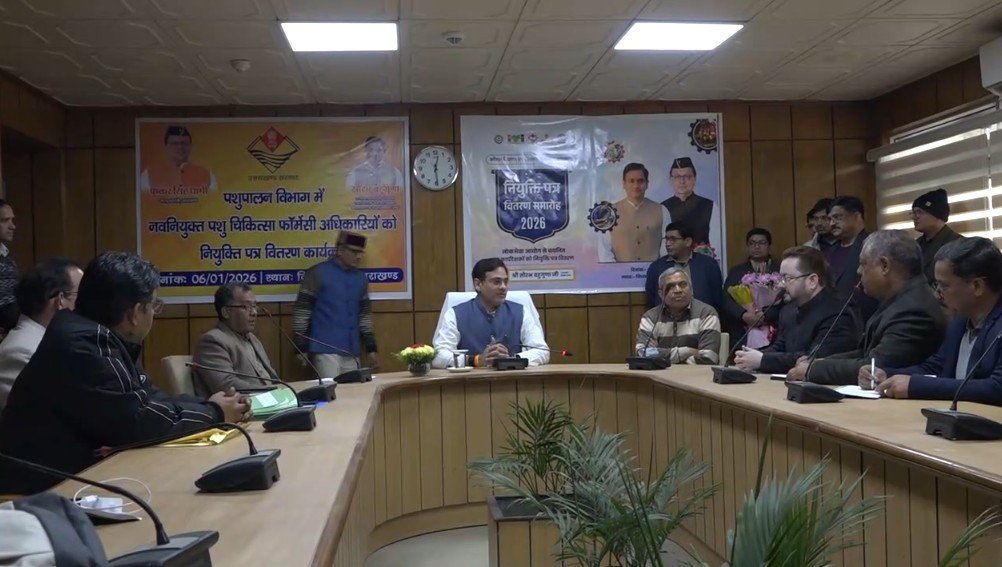 पशुपालन विभाग तथा कौशल विकास एवं सेवायोजन विभाग में उत्तराखण्ड अधीनस्थ सेवा चयन आयोग एवं राज्य लोक सेवा आयोग द्वारा चयनित अभ्यर्थियों को आज नियुक्ति पत्र वितरित किए गए। नियुक्ति पत्र पशुपालन मंत्री सौरभ बहुगुणा द्वारा प्रदान किए गए।इस अवसर पर पशुपालन मंत्री सौरभ बहुगुणा ने कहा कि कुल 16 चयनित कार्मिकों को नियुक्ति पत्र प्रदान किए गए हैं, जो रोजगार सृजन और युवाओं को सरकारी सेवाओं से जोड़ने की दिशा में एक महत्वपूर्ण कदम है।