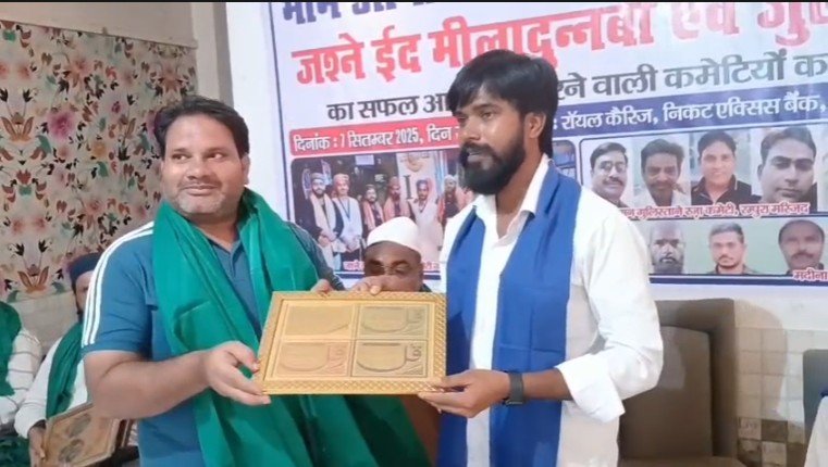 भीम आर्मी आजाद समाज पार्टी के जिला अध्यक्ष सत्येंद्र कुमार नें आज जश्ने ईद मिलादुन नबी और जुलूस ए मोहम्मदी के सफल आयोजन होने पर नगर के रॉयल कैरिज होटल में सितारगंज की समस्त कमेटीयो के जिम्मेदारों को शॉल उड़ा कर एवं दीनी नक्स देकर सम्मानित किया। जिला अध्यक्ष सत्येंद्र कुमार ने कहा पूरे शहर को तरह तरह की सुन्दर लाइटो से सितारगंज को रोशन किया था और ज़ुलूस ए मोहम्मदी में हजारों की संख्या में लोनो नें शिरकत की उसके बाद भी शहर में शांति पूर्ण तरीके से जुलूस का सफल आयोजन हुआ जिससे प्रभावित होकर जिम्मेदारो कमेटियों का सफल आयोजन और कड़ी मेहनत को देखते हुए आज शहर की सभी कमेटियों को सम्मानित किया गया है उन्होंने कहा सम्मानित करते हुए मुझे बेहद खुशी हो रही है बीते वर्ष भी भीम आर्मी नें सभी कमेटियों को सम्मानित किया था। वही जश्ने ईद मिलादुन नबी की कमेटी के सदस्यों ने भीम आर्मी आजाद समाज पार्टी का धन्यवाद किया है।