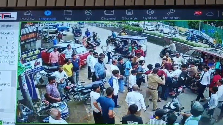 तभी अतिक्रमण की टीम में शामिल पुलिसकर्मी मौके पर पहुंचते हैं और बीच बचाव करते हुए स्कूटी सवारों को बाइक सवारों के चंगुल से छुड़ाते है। यह पूरी घटना पास के लगे एक सीसीटीवी कैमरे में कैद हुई है जिसकी वीडियो सोशल मीडिया पर वायरल हो रही है। दोनों पक्षों के बीच किस बात को लेकर विवाद हुआ इसका पता नहीं चला है।