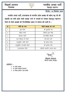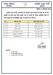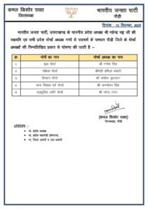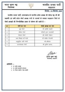 उत्तराखंड में भारतीय जनता पार्टी के प्रदेश अध्यक्ष महेंद्र भट्ट की सहमति एवं सभी प्रदेश मोर्चा अध्यक्ष गणों से परामर्श के पश्चात जिलों के मोर्चे के अध्यक्षों की घोषणा की गयी है..
