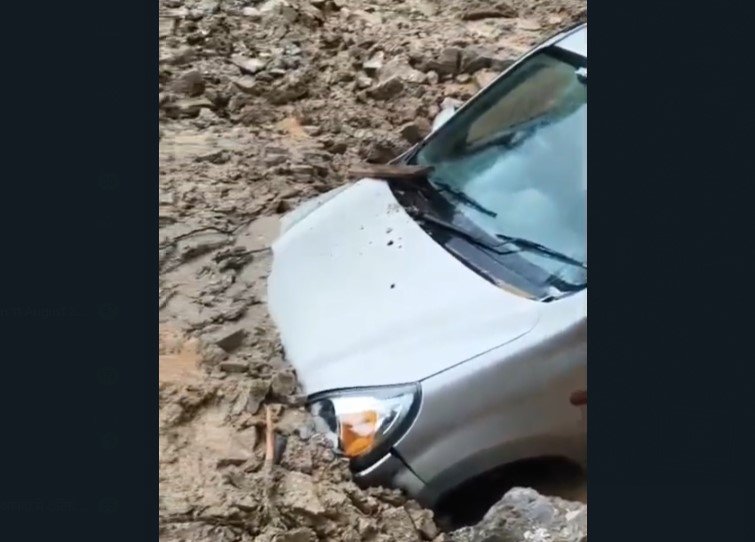 चमोली में भारी बारिश के कारण कई जगह पर लगातार भूस्खलन हो रहा है। ऐसा ही कुछ यहाँ बद्रीश होटल के पास राष्ट्रीय राजमार्ग संख्या-07 पर पहाड़ से हुए भूस्खलन से सड़क पर भारी मलबा जमा होने से यातायात पूरी तरह ठप हो गया है। जिसको पार करने के चक्कर में एक कार दलदल में फंस गई है, गनीमत रही कि वाहन में सवार तीन लोग सुरक्षित हैं,