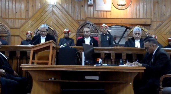 उत्तराखण्ड उच्च न्यायालय में शीतकालीन अवकाश खत्म होने के बाद आज उच्च न्यायालय के मुख्य न्यायाधीश मनोज कुमार गुप्ता ने फुल कोर्ट रिफ्रेंस के साथ ही आज स्वागत समारोह आयोजित हुआ। मुख्य न्यायाधीश का उच्च न्यायालय में न्यायमूर्ति रवींद्र मैथानी, न्यायमूर्ति आलोक कुमार वर्मा, न्यायमूर्ति पंकज पुरोहित, न्यायमूर्ति राकेश थपलियाल, न्यायमूर्ति शिद्धार्थ साह सहित रजिस्ट्रार जनरल व उच्च न्यायालय बार के अध्यक्ष सहित सभी न्यायमूर्तियों व न्यायालय में मौजूद अधिवक्ताओं ने स्वागत किया।