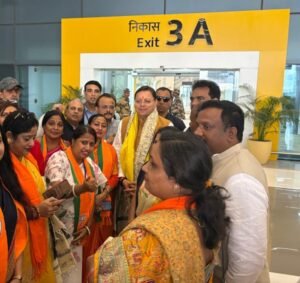 पटना एयरपोर्ट पहुंचने पर मुख्यमंत्री पुष्कर सिंह धामी का स्थानीय कार्यकर्ताओं और पदाधिकारियों द्वारा गर्मजोशी से स्वागत किया गया।