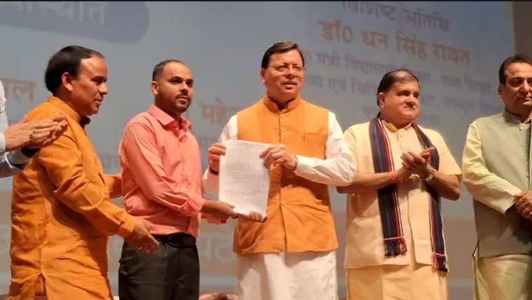 खबर देहरादून से है जहाँ शिक्षकों को नियुक्ति पत्र वितरण किया गया जिसमें बतौर मुख्य अतिथि मुख्यमंत्री पुष्कर सिंह धामी ने शिरकत की इस दौरान स्वास्थ्य एवं शिक्षा मंत्री धन सिंह रावत बीजेपी प्रदेश अध्यक्ष महेन्द्र भट्ट सहित विधायक विनोद चमोली भी मौजूद रहे। बता दें कि UKSSSC के माध्यम से 1347 सहायक अध्यापक को नियुक्ति पत्र वितरित किए गए साथ ही लोक सेवा आयोग के माध्यम से 109 समीक्षा अधिकारी, सहायक समीक्षा अधिकारी को नियुक्ति पत्र वितरित किए गए। अब तक प्रदेश में 25 हजार से अधिक युवाओं को सरकारी नौकरियां मिल चुकी है।