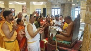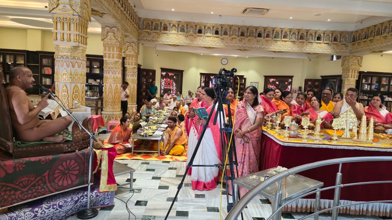 अपने प्रवचन में पूज्य आचार्य श्री ने कहा, “देहरी को लांघ कर ही भगवान मिलते हैं। हम अकसर पर्याय मूढ़ में जीते हैं। भगवान के भामण्डल में इतनी शक्ति है कि वे सात भवों का ज्ञान रखते हैं। उन्होंने पूजा के तीन स्वरूप — सचित पूजा, अचित्त पूजा और सदेचाचित पूजा — पर प्रकाश डालते हुए कहा कि आज के युग में पूजा के स्थान पर दिखावे के भाव अधिक हो गए हैं।”