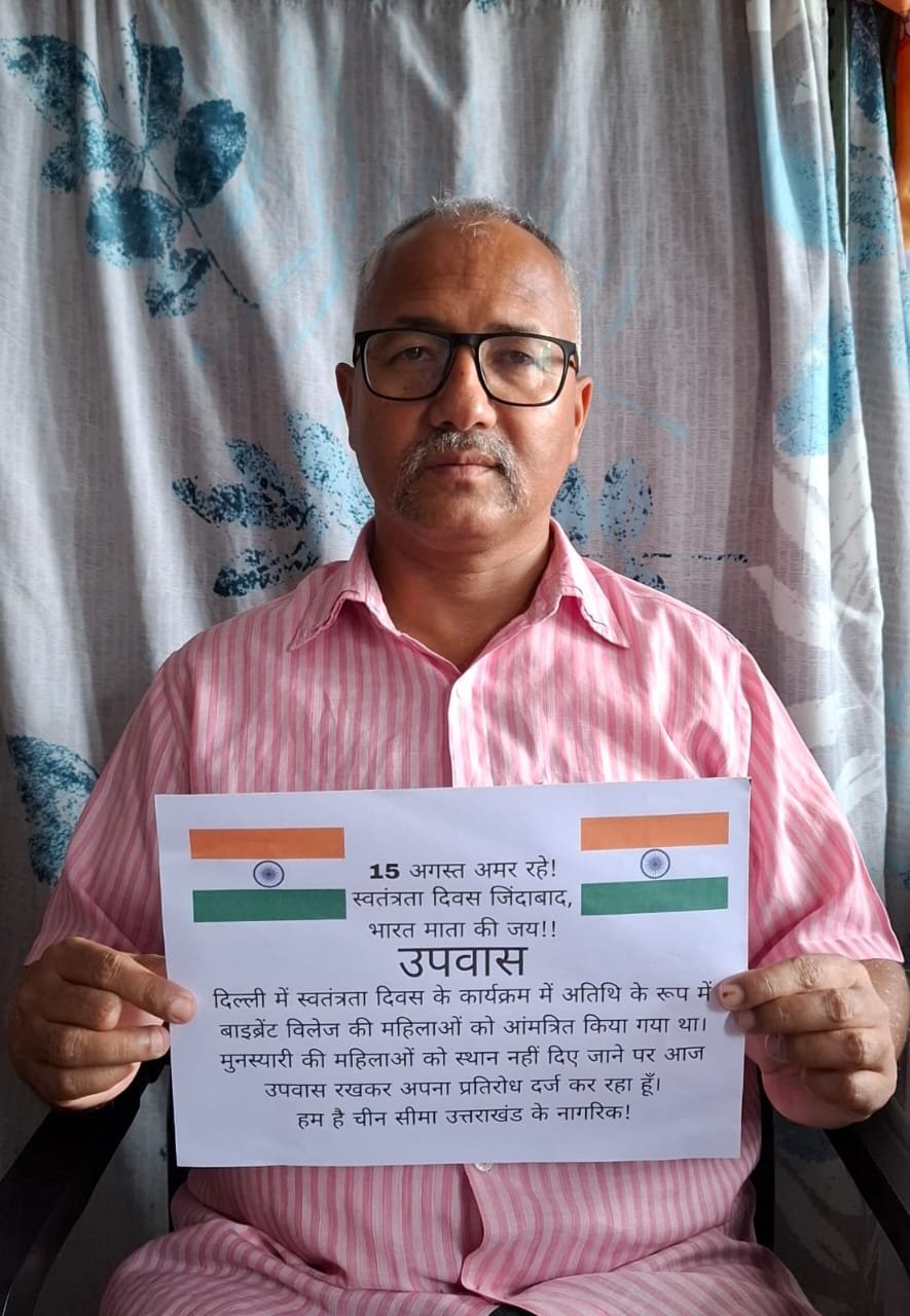 स्वतंत्रता संग्राम में 43 सेनानी देने वाले मुनस्यारी क्षेत्र के नागरिक 15 अगस्त को अपनी उपेक्षा से खफा होकर उपवास पर बैठे। लोगों ने आरोप लगाया कि दिल्ली में आयोजित स्वतंत्रता दिवस समारोह में मुनस्यारी की महिलाओं को आमंत्रित नहीं किया गया, जो सीमांत क्षेत्र का अपमान है।