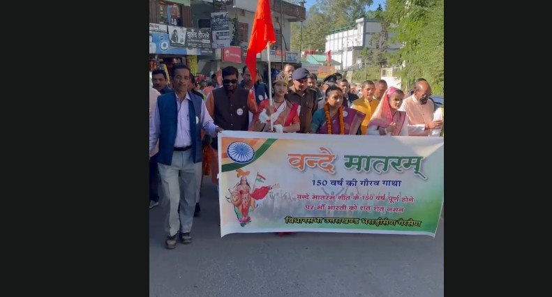 गैरसैंण, चमोली | वंदेमातरम गीत के 150 वर्ष पूर्ण होने के उपलक्ष्य में आज गैरसैंण में उत्तराखंड विधानसभा अध्यक्ष ऋतु खण्डूडी भूषण के नेतृत्व में भव्य प्रभात फेरी निकाली गई। कार्यक्रम में स्थानीय जनता, छात्र-छात्राओं और कार्यकर्ताओं ने उत्साहपूर्वक भाग लिया। वंदेमातरम के जयघोष से पूरा क्षेत्र देशभक्ति की भावना से गूंज उठा।