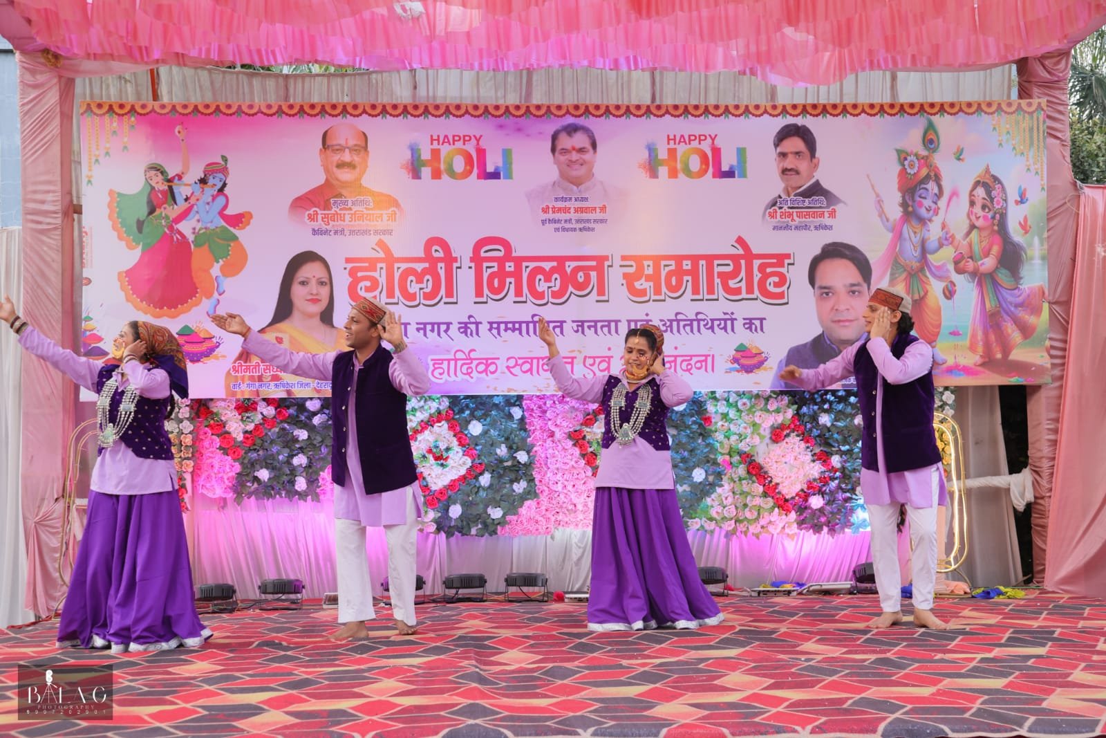 कार्यक्रम में कैबिनेट मंत्री सुबोध उनियाल, क्षेत्रीय विधायक प्रेमचंद अग्रवाल और मेयर शंभू पासवान ने उपस्थित होकर होली की शुभकामनाएं दीं। वक्ताओं ने कहा कि होली प्रेम, समरसता और सांस्कृतिक मूल्यों को सशक्त करने का पर्व है।