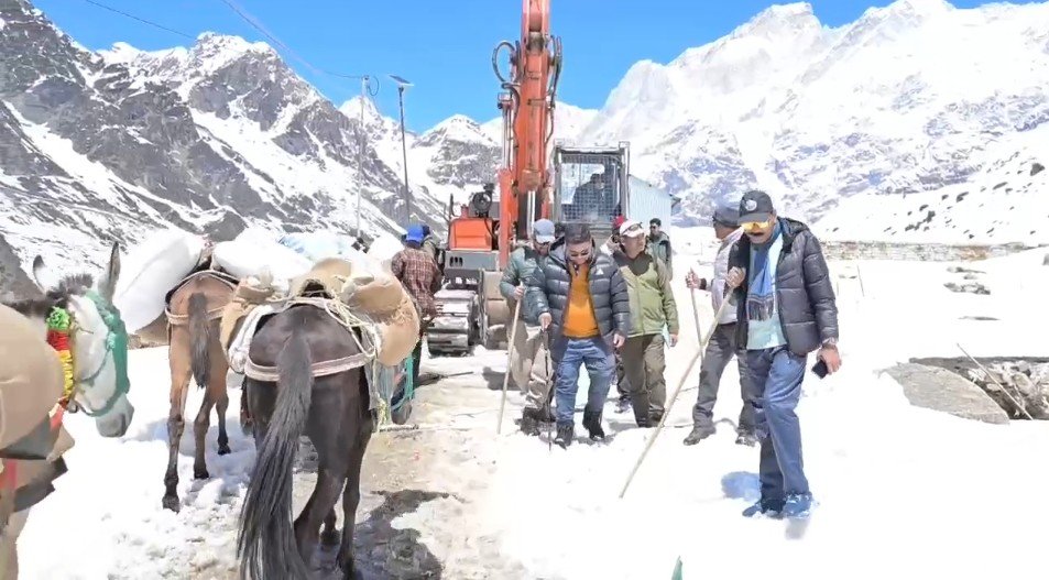 कई स्थानों पर 4 से 5 फीट तक बर्फ मौजूद है, जिसे हटाने का कार्य तेजी से किया जा रहा है। धाम क्षेत्र में 60 से अधिक श्रमिक एवं ट्रैक रूट पर 70 से 75 मजदूर तैनात किए गए हैं। पैदल मार्ग से बर्फ हटाने का कार्य लगभग पूरा हो चुका है, जल्द ही पूरे ट्रेक रूट का पुनर्निर्माण पूर्ण हो जाएगा।