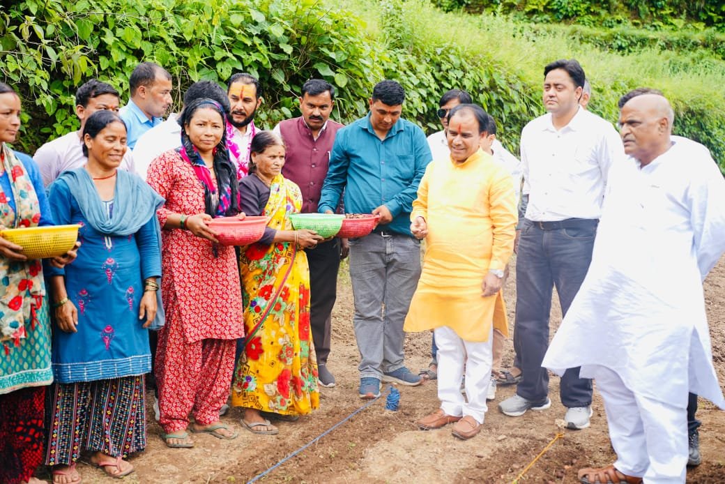उत्तराखंड के पर्वतीय क्षेत्रों की बंजर भूमि अब आत्मनिर्भरता और सामूहिक प्रगति की मिसाल बनेगी। पाबौ क्षेत्र में सहकारिता मंत्री डॉ. धन सिंह रावत ने वीर माधो सिंह भंडारी सामूहिक सहकारी खेती योजना का विधिवत शुभारंभ किया। इस अवसर पर मंत्री ने किसानों के साथ खेतों में उतरकर फूलों के बीज रोपण कर साझा खेती की इस महत्वाकांक्षी योजना को धरातल पर आकार दिया।