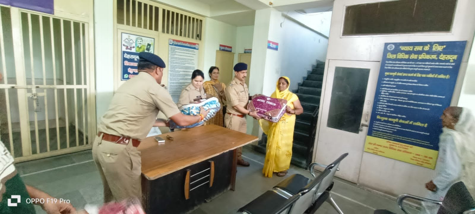 उच्चाधिकारीगणों द्वारा बुजुगों को किये गये कम्बल तथा फर्स्ट एड से सम्बन्धित आवश्यक वस्तुए जैसे: बी0पी0 मशीन, थर्मामीटर, बैन्डेज तथा दवाइया वितरित।
