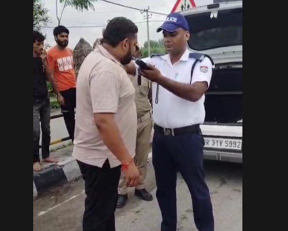 वाहन चालक का एल्कोमीटर टेस्ट पॉजिटिव आने पर हिरासत में लिया गया।