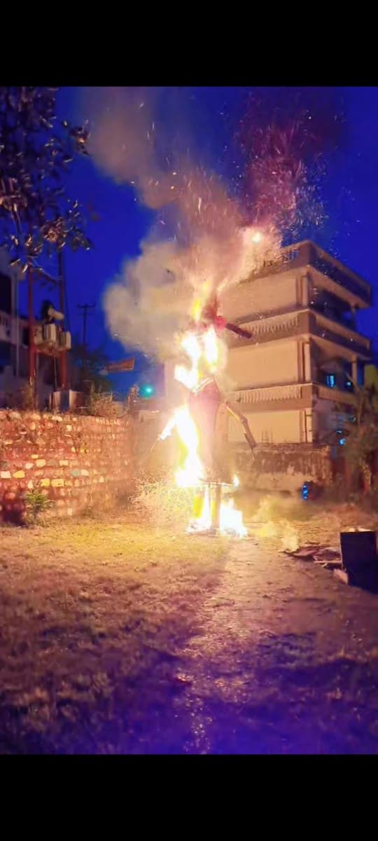 गूँज संस्था द्वारा राजेश्वर नगर फेज 1 सहस्त्रधारा रोड पर 21 फुट रावण के पुतले का दहन किया गया ।