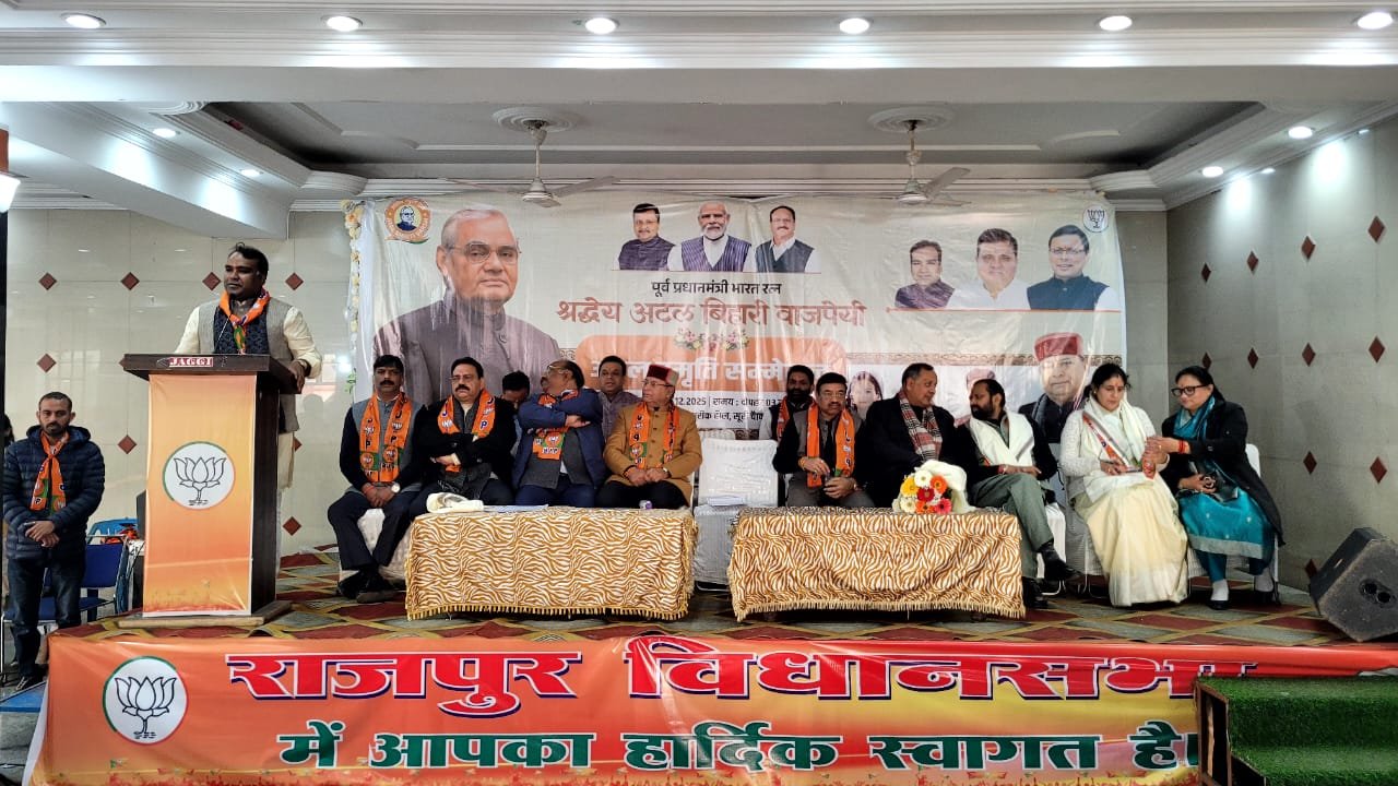 देहरादून में राजपुर विधानसभा क्षेत्र के अमरीक हॉल में “अटल सुशासन सम्मेलन” का भव्य आयोजन किया गया। सम्मेलन का उद्देश्य भारत रत्न पूर्व प्रधानमंत्री अटल बिहारी वाजपेयी के सुशासन, राष्ट्रनिर्माण और वैचारिक दृष्टिकोण को जन-जन तक पहुंचाना रहा। कार्यक्रम की शुरुआत मुख्य अतिथियों द्वारा अटल जी के चित्र पर पुष्पांजलि अर्पित कर श्रद्धांजलि देने के साथ हुई।