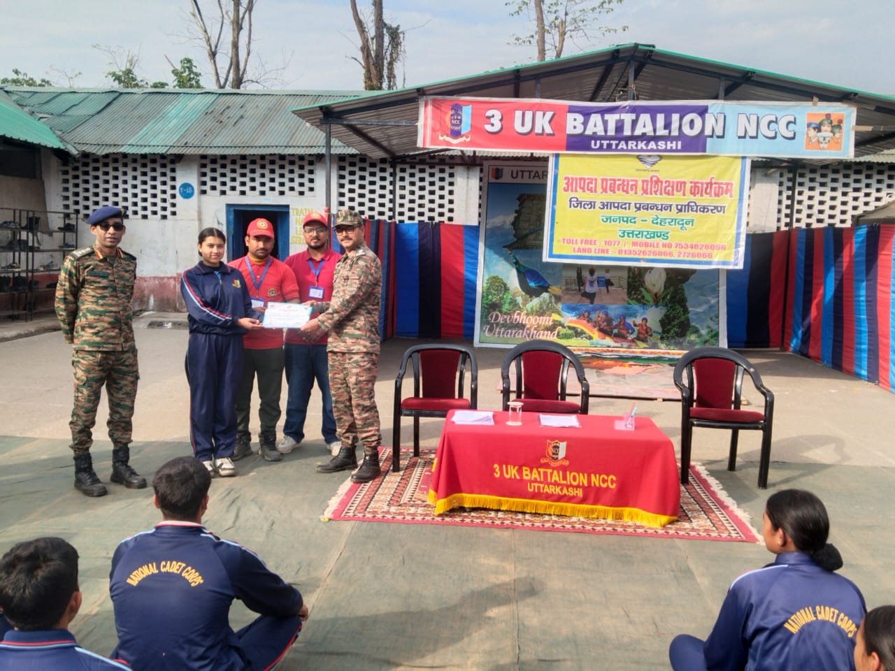 कार्यक्रम में 03 यूके बटालियन एनसीसी के 57 कैडेट्स ने सहभागिता की। प्रशिक्षण के दौरान कैडेट्स को भूकंप, बाढ़, भूस्खलन, वज्रपात, खोज एवं बचाव, रस्सी तकनीक, रिवर क्रॉसिंग, प्राथमिक उपचार एवं आपातकालीन संचार उपकरणों के उपयोग की सैद्धांतिक एवं व्यवहारिक जानकारी दी गई।