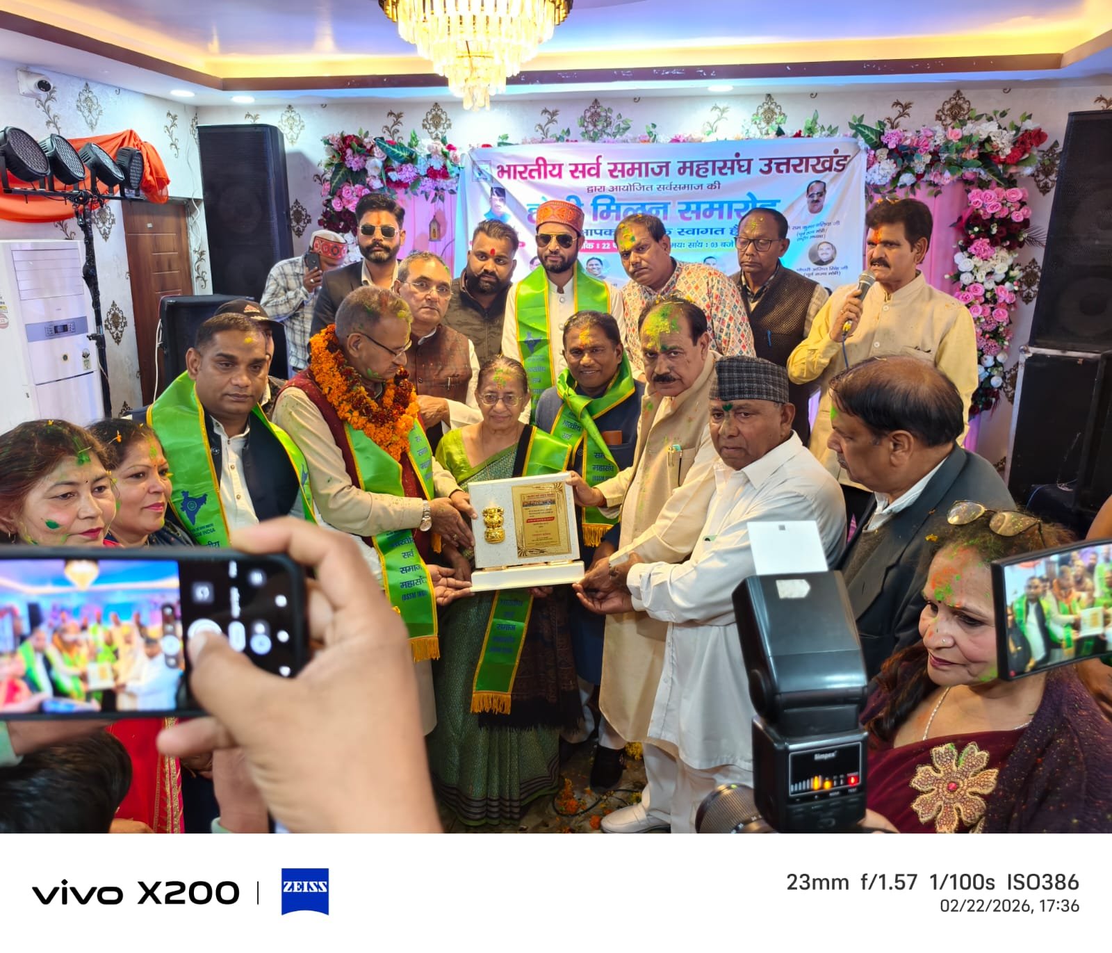 देहरादून के जीएमएस रोड स्थित आर्य पैलेस में भारतीय सर्व समाज महासंघ द्वारा भव्य होली मिलन समारोह का आयोजन किया गया। कार्यक्रम में प्रदेश के कैबिनेट मंत्री गणेश जोशी, कैंट विधायक सविता कपूर और महासंघ के राष्ट्रीय अध्यक्ष रामकुमार वालिया ने सहभागिता की।