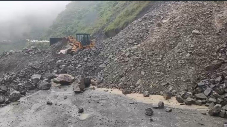 कालसी – चकराता मोटर मार्ग पर एक बार फिर बड़ा लैंडस्लाइड हुआ है।सबसे बड़े लैंडस्लाइड जोन जझरेड मोड पर पहाड़ों से लगातार मलवा और बड़े बड़े पत्थर नीचे गिर रहे हैं। भारी भूस्खलन की वजह से जौनसार बाबर की लाइफ लाइन कहे जाने वाला ये मुख्य मार्ग पूरी तरीके से बंद हो चुका है। रास्ता बंद होने की वजह से दोनों और वाहनों की लंबी कतारे लग गई। लोक निर्माण विभाग की 2 जेसीबी मशीने लगातार मलवे को हटाने का काम कर रही है। फिलहाल ये रास्ता पूरी तरीके से बंद हो चुका है और रुक-रुक कर पहाड़ों से जानलेवा मलवा और पत्थर नीचे गिर रहे हैं। वहीं पहाड़ों से गिरते मलबे और पत्थरों की वजह से फिलहाल रास्ते को खोलना मुश्किल हो रहा है। जिस वजह से राहगीर अब भी रास्ता खुलने का इंतजार कर रहे हैं।