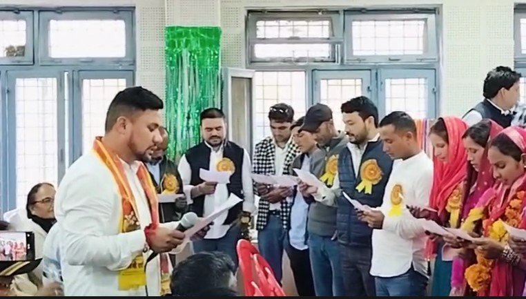 विकास खंड ज्योतिर्मठ चमोली के नव निर्वाचित ब्लॉक प्रमुख,ज्येष्ठ उप कनिष्ठ उप प्रमुख सहित सदस्य गणों का शपथ ग्रहण समारोह ब्लॉक सभागार ज्योर्तिमठ में बड़े ही धूम धाम से संपन्न हुआ, सबसे पहले उप जिला अधिकारी ज्योतिर्मठ चंद्र शेखर वशिष्ठ द्वारा प्रमुख छेत्र पंचायत ज्योतिर्मठ अनूप नेगी को शपथ दिलाई गई..
