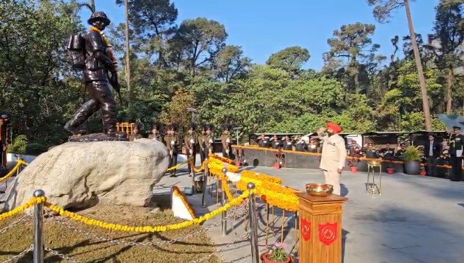 देहरादून में मंगलवार को विजय दिवस की 54वीं वर्षगांठ के अवसर पर मुख्यालय उत्तराखंड सब एरिया द्वारा शौर्य स्थल पर पुष्पांजलि समारोह का आयोजन किया गया। इस अवसर पर उत्तराखंड के राज्यपाल लेफ्टिनेंट जनरल (से.नि.) गुरमीत सिंह, मेजर जनरल एम.पी.एस. गिल, मेजर जनरल रोहन आनंद सहित थल, वायु एवं नौसेना के वरिष्ठ अधिकारियों ने शहीद सैनिकों को श्रद्धांजलि अर्पित की।