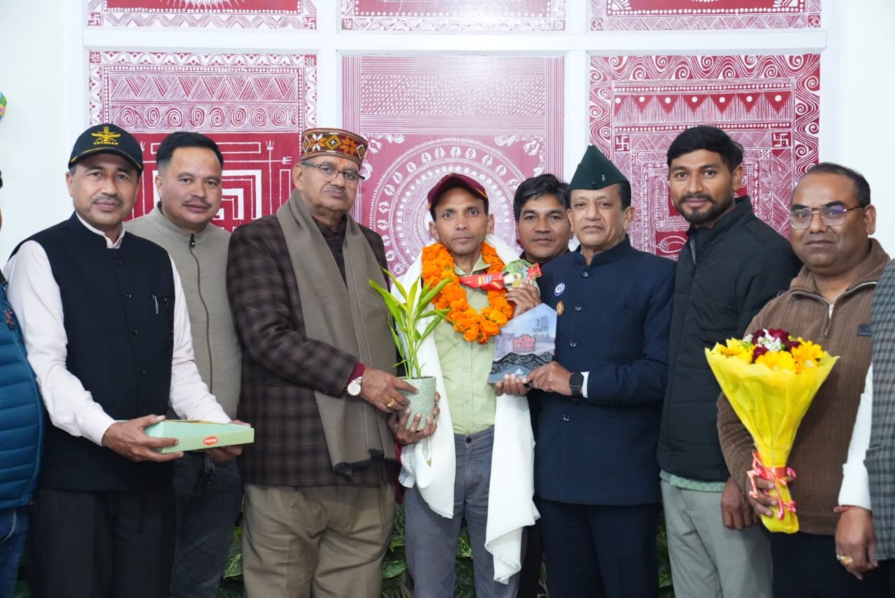 ओमान में आयोजित 120 किलोमीटर अल्ट्रा ट्रेल रन प्रतियोगिता में प्रथम स्थान प्राप्त करने वाले जनपद चमोली के पूर्व सैनिक नायक कलम सिंह बिष्ट को सैनिक कल्याण मंत्री गणेश जोशी ने अपने शासकीय आवास पर सम्मानित किया। मंत्री ने शॉल ओढ़ाकर एवं पौधा भेंट कर उन्हें बधाई और शुभकामनाएं दीं।
