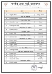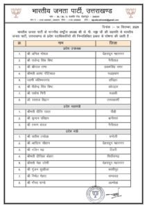 भाजपा उत्तराखंड ने प्रदेश पदाधिकारियों की नई सूची की जारी