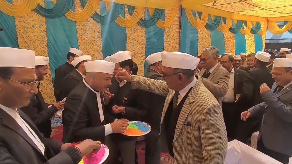 पूरे देश मे जहां होली का त्यौहार सादगी और सौहार्द के साथ मनाया जा रहा है तो वही उत्तराखंड हाईकोर्ट में भी बार एसोशियेशन द्वारा आज होली मिलन कार्यक्रम का आयोजन किया गया। हाईकोर्ट बार एशोसिएशन द्वारा आयोजित होली मिलन समारोह में न्यायाधीशों व अधिवक्ताओ ने एक दूसरे को अबीर गुलाल का तिलक लगाकर एक दूसरे को होली की शुभकामनाये देते हुए देश वासियों के लिए सुख सौहार्द की कामना की।