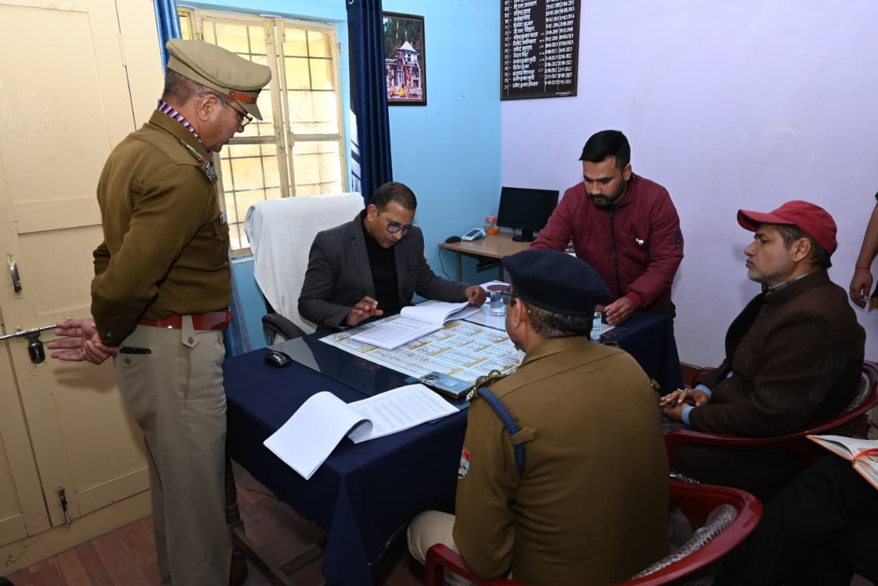 तहसील निरीक्षण के बाद जिलाधिकारी ने धरासू थाना का निरीक्षण किया, जहाँ उन्हें गार्ड ऑफ ऑनर दिया गया। उन्होंने थाना प्रांगण, मालखाना, अभिलेख, शस्त्रागार और महिला सहायता कक्ष का जायजा लिया और नागरिकों की समस्याओं के त्वरित समाधान, समयबद्ध कार्रवाई और पारदर्शिता सुनिश्चित करने के निर्देश दिए। गंभीर अपराध, मादक पदार्थ और साइबर अपराधों की अद्यतन स्थिति भी जानी। इस दौरान उन्होंने राजस्व ग्रामों के अभिलेख पुलिस कार्यालयों में उपलब्ध कराने के निर्देश दिए।
