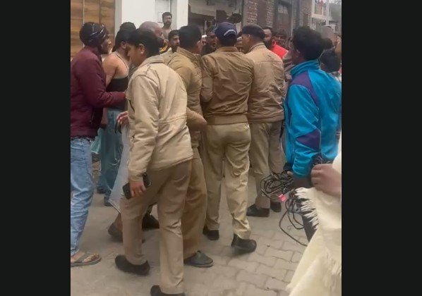 पुलिस फोर्स मौके पर तैनात, इलाके में अतिरिक्त निगरानी बढ़ाई गई ताकि स्थिति बिगड़ने न पाए और कानून व्यवस्था कायम रहे।