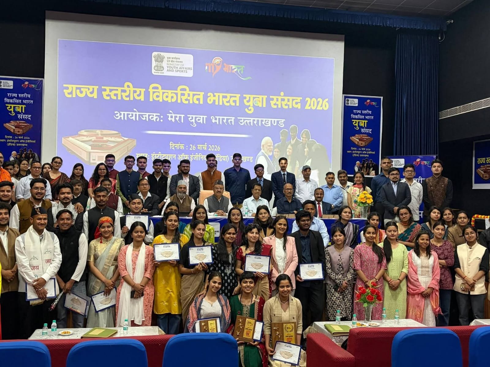 देहरादून में Ministry of Youth Affairs and Sports द्वारा राज्य स्तरीय ‘विकसित भारत युवा संसद 2026’ का आयोजन किया गया, जिसमें विभिन्न जिलों से आए युवाओं ने बढ़-चढ़कर भाग लिया।