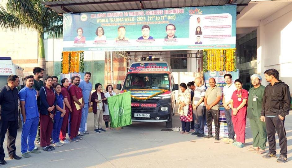 अखिल भारतीय आयुर्विज्ञान संस्थान (एम्स) ऋषिकेश में विश्व आघात सप्ताह विधिवत शुरू हो गया। इस अवसर पर एम्स की निदेशक प्रोफेसर (डॉ.) मीनू सिंह जी ने ट्रॉमा सेंटर के विभागाध्यक्ष प्रो. (डॉ) कमर आजम एवं डॉ. मधुर उनियाल जी के संचालन में ट्रॉमा रथ को हरी झंडी दिखाकर रवाना किया ।