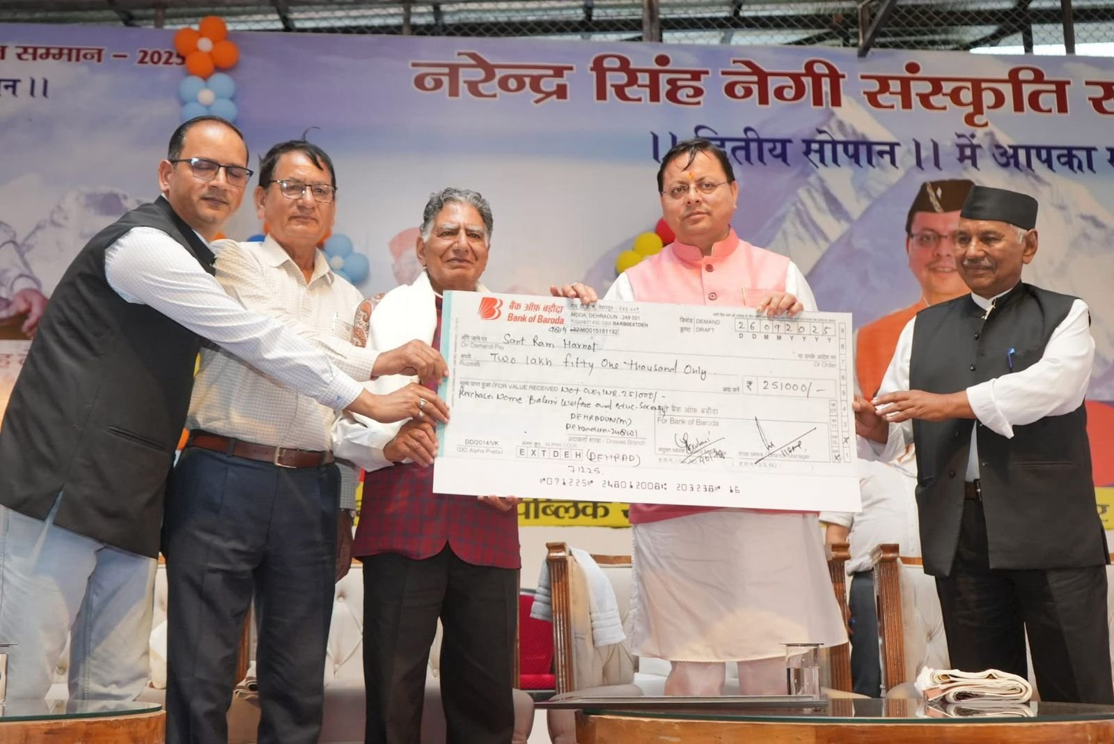 सोशल बलूनी पब्लिक स्कूल, देहरादून में आयोजित ‘नरेन्द्र सिंह नेगी संस्कृति सम्मान’ समारोह में मुख्यमंत्री पुष्कर सिंह धामी ने हिमाचल प्रदेश के वरिष्ठ साहित्यकार और सामाजिक कार्यकर्ता एस.आर. हरनोट को सम्मानित किया। सम्मान के तहत उन्हें प्रतीक चिन्ह, प्रशस्ति पत्र, अंगवस्त्र और ₹2.51 लाख की राशि प्रदान की गई। यह सम्मान उत्तराखंड लोक समाज द्वारा वर्ष 2024 से शुरू किया गया है।