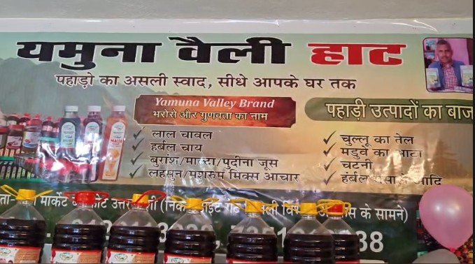 यमुना वैली हाट में स्थानीय उत्पादों और विभिन्न प्रकार का जूस,अचार,चटनी जैम,और शुद्ध लाल चावल सहित तमाम स्थानीय उत्पादों को विधिवत बाजार में उतारा गया जिसका शुभारंभ नगर पालिका बड़कोट में हो गया।
