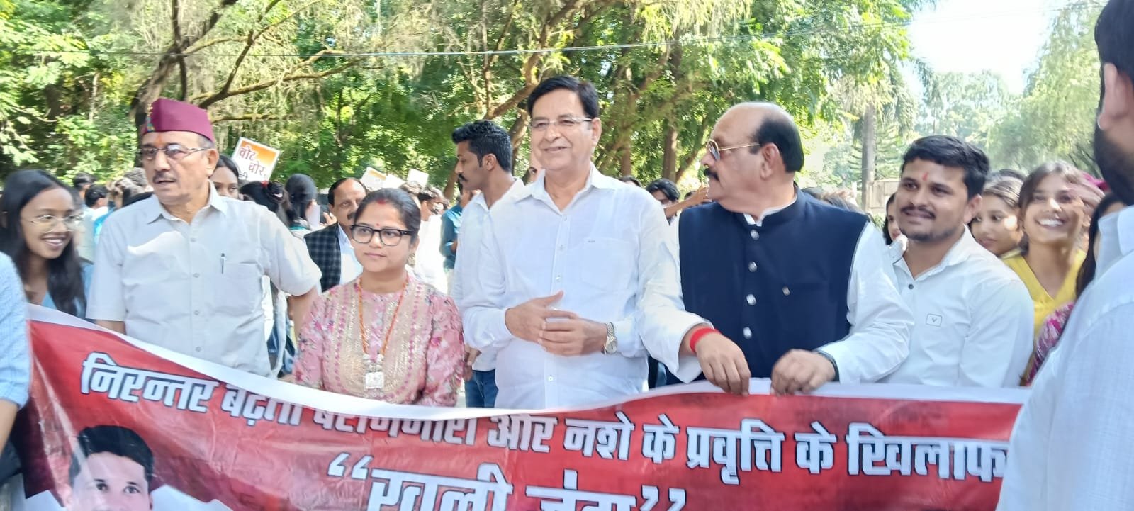 देहरादून के डीएवी पीजी कॉलेज में एनएसयूआई के अध्यक्ष पद प्रत्याशी रहे हरीश जोशी के नेतृत्व में बेरोजगारी और नशे की बढ़ती प्रवृत्ति के खिलाफ एक विशाल आक्रोश रैली का आयोजन किया गया।